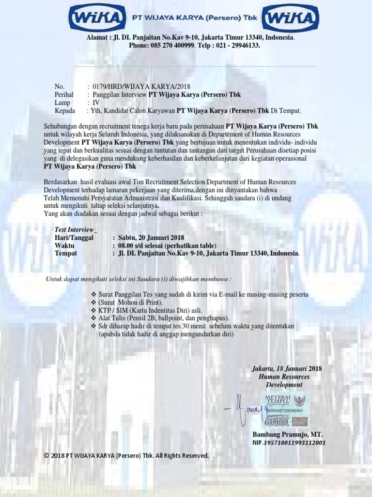 for "Pt Wijaya Karya Indopart / Lowongan di PT. Wijaya Karya (Persero) Tbk"