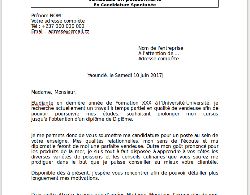 Espaces, j'ai réalisé au cours de mes études des travaux qui m'ont permis d'apprécier le travail sur le terrain et. 1/ aller pécher une lettre type sur internet en tapant « lettre de motivation gratuite, commercial, banque » ou bien encore « lettre de motivation vendeuse ». Pour vous aider dans vos recherches de jobs, stages ou premier emploi, l'etudiant met à votre disposition plus de 300 modèles gratuits de lettres de motivation et de cv. Vous pouvez le copier/coller dans votre traitement de texte ou encore cliquer sur le lien plus bas. Vous ne trouverez jamais la lettre de motivation correspondant exactement à votre recherche puisque par définition une lettre de motivation est personnelle et répond à une demande précise.